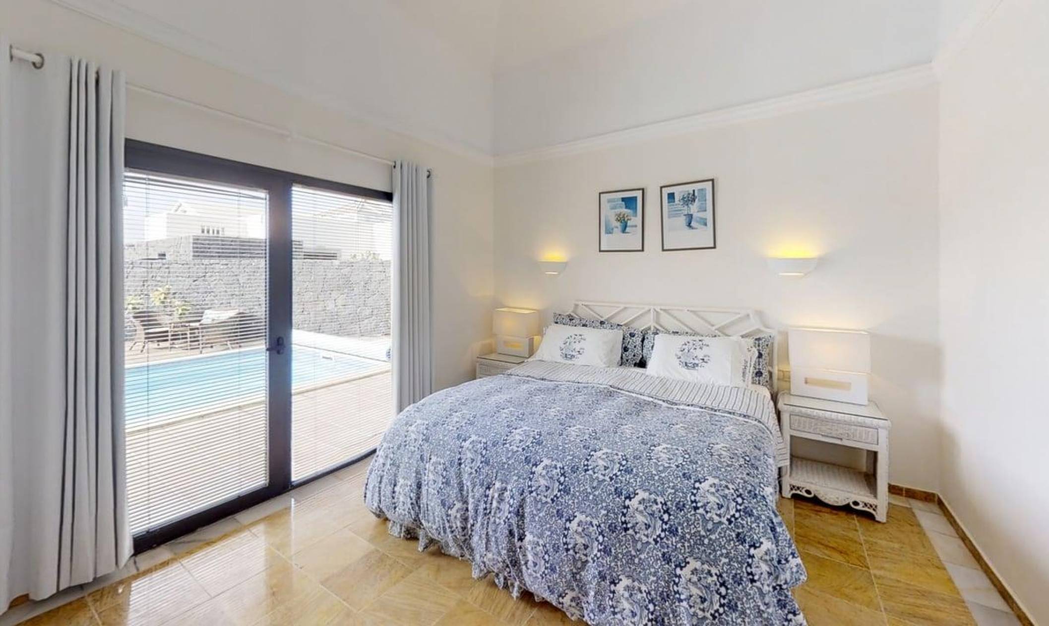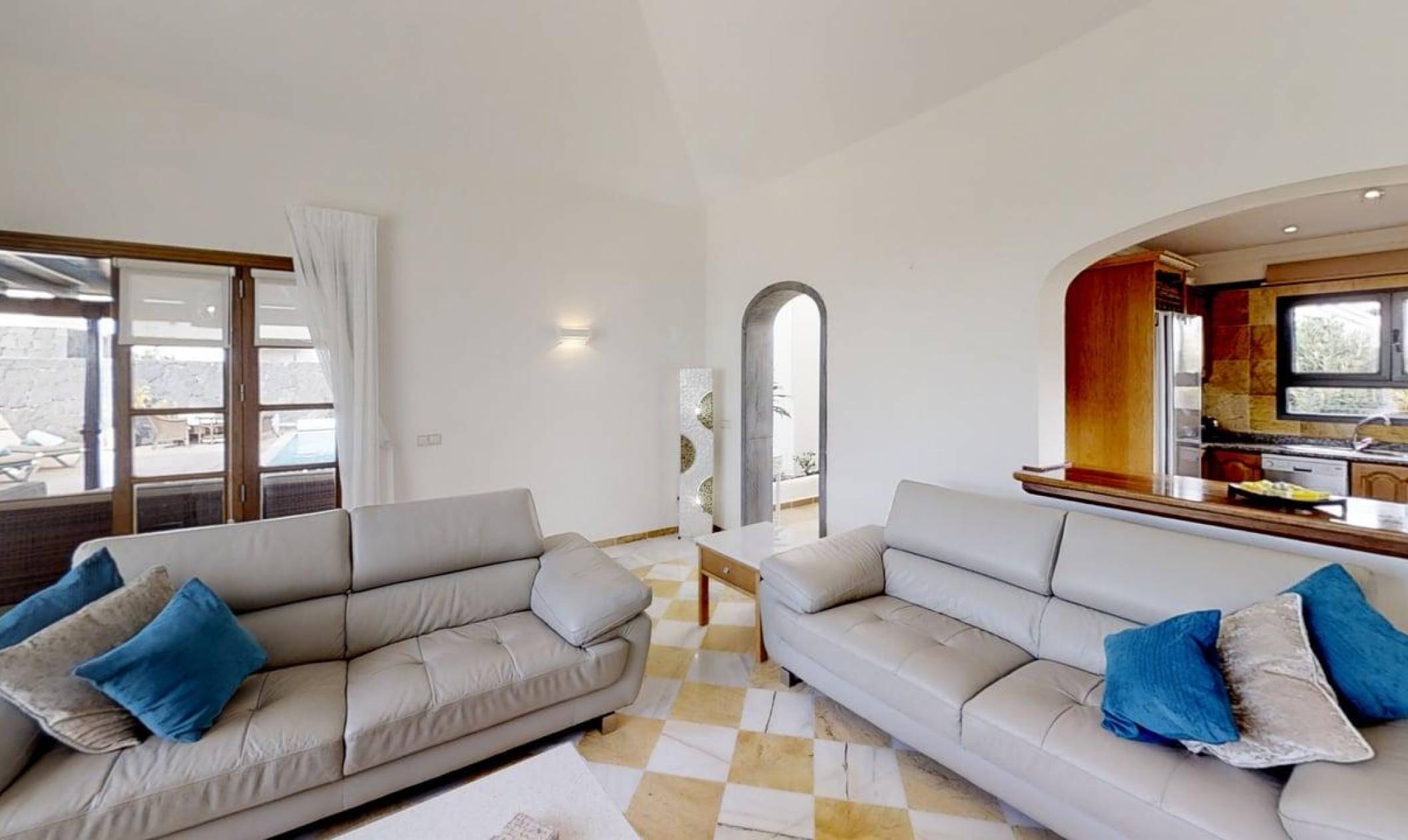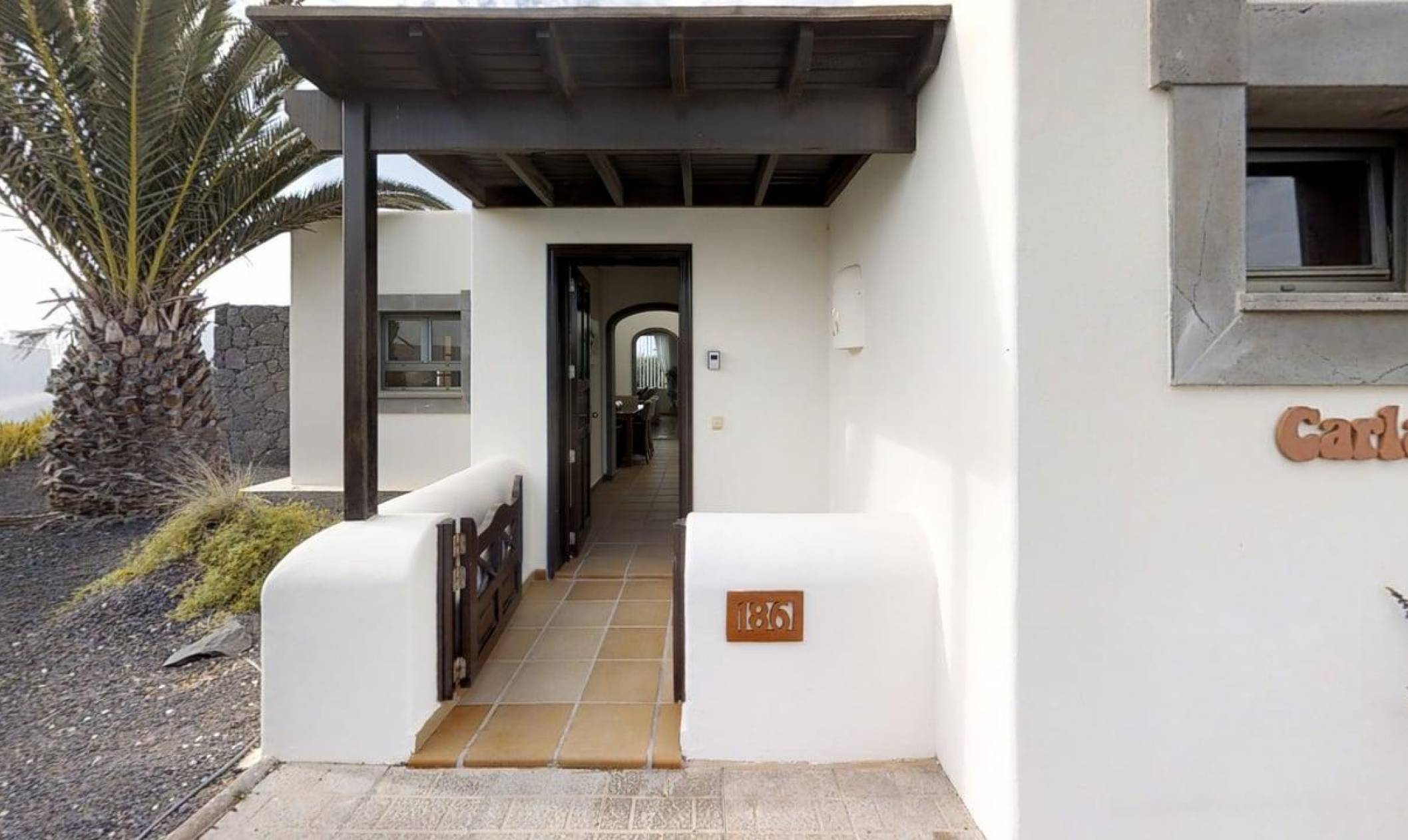 Carlara is superb 5 Star modern villa, you will be 250m from the amazing Sea front promenade walk to Playa Blanca, along the Atlantic sea's edge, where there are 2 lighthouses and Fuerteventura & Los Lobos views. This is a single storey, L shaped villa, with 3 air conditioned bedrooms, all over looking the private pool, not overlooked. The electric heated swimming pool faces south, so it receives lots of the wonderful sunshine, and there is also a huge shady pergola, all this in a large plot of 750 sq mtrs; complete with large outdoor dining table and dedicated barbecue area. Whilst being so close to local amenities, shops and excellent restaurants, Carlara offers unique outdoor privacy, within our mature established Canarian garden, surrounded by a volcanic rock wall. Enabling you to eat alfresco, dine out or have multiple choice take away. Has a safe and security alarm system. 2+ car park spaces and only 2mins walk to the nearest bakery, restaurants, takeaway, pubs and small supermarket with UK newspapers. Our local English agents Jo and Kevin are on hand, based in Playa Blanca are 10 minutes away, who manage the villa and the supporting services. If there are any issues, they are contactable to provide assistance and provide a great welcome pack of bread, cheese, ham and marmalade, butter, water, wine, coffee, tea, orange juice, milk & bathroom tissues. The cleaning team ensure that the villa and linen is scrupulously cleaned before your arrival, they have very high standards. The same with the pool, which is tested twice a week, balanced and cleaned. We are always replacing and upgrading things in our villa, and pay a close eye to detail as we really do want you to enjoy your holiday and tell everyone about us.