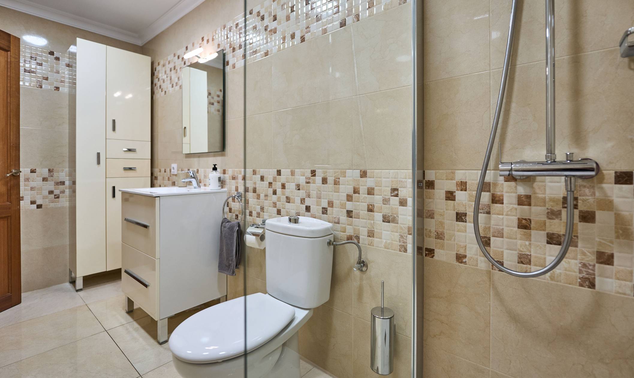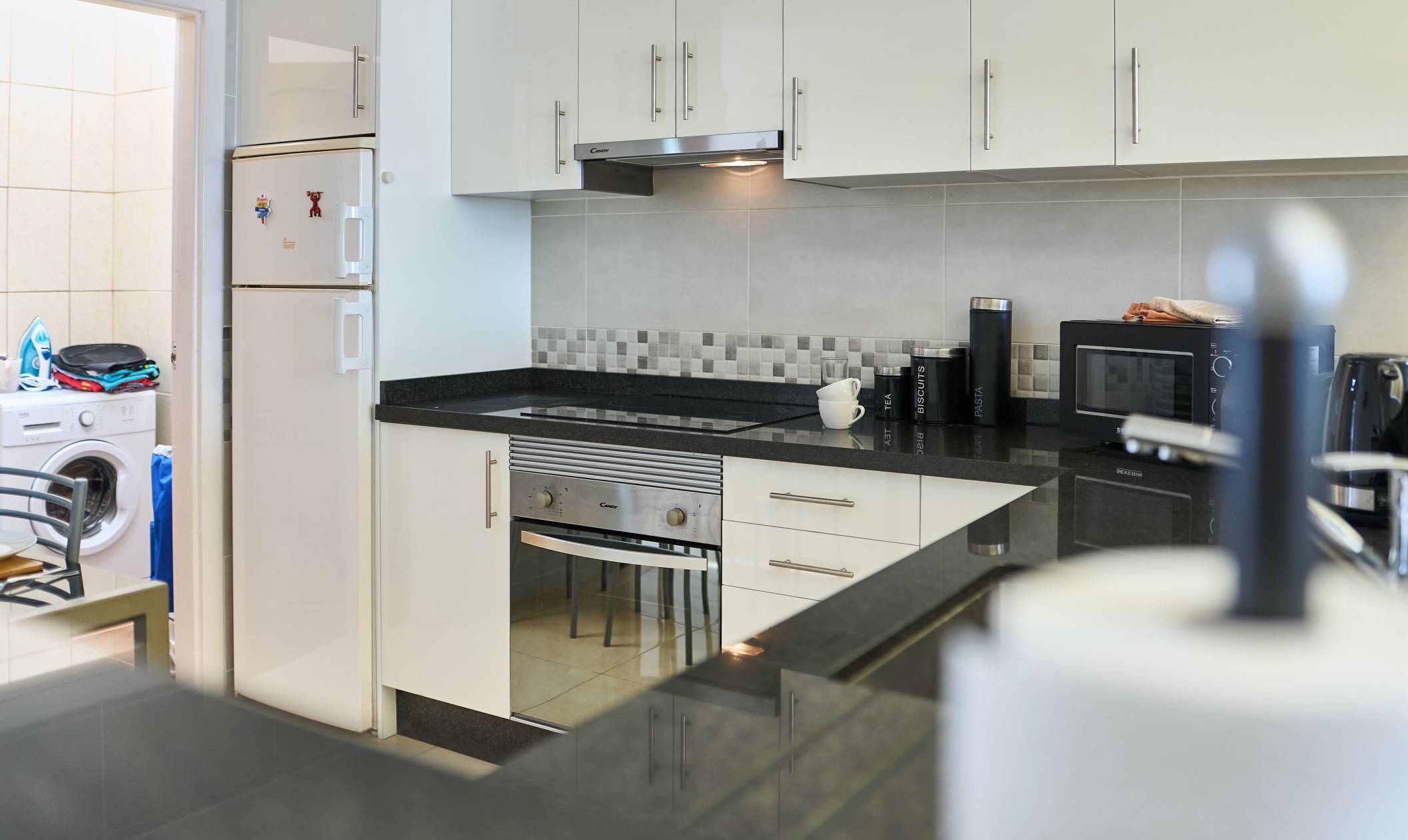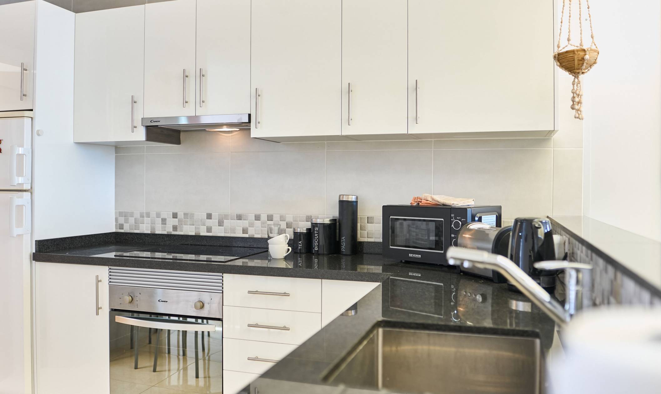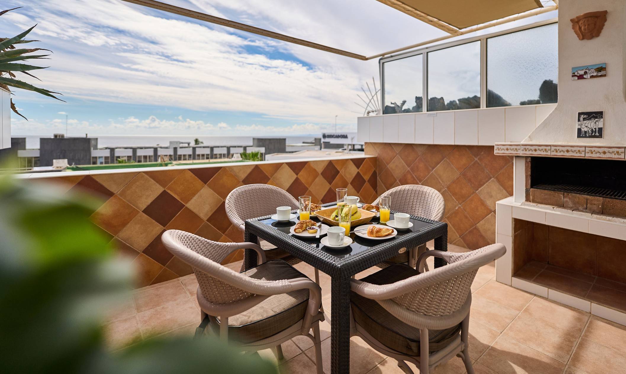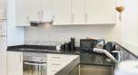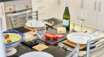 The apartment also has a large, private terrace leading from the living room. There are beautiful sea views from the terrace which is equipped with patio furniture and a built-in BBQ